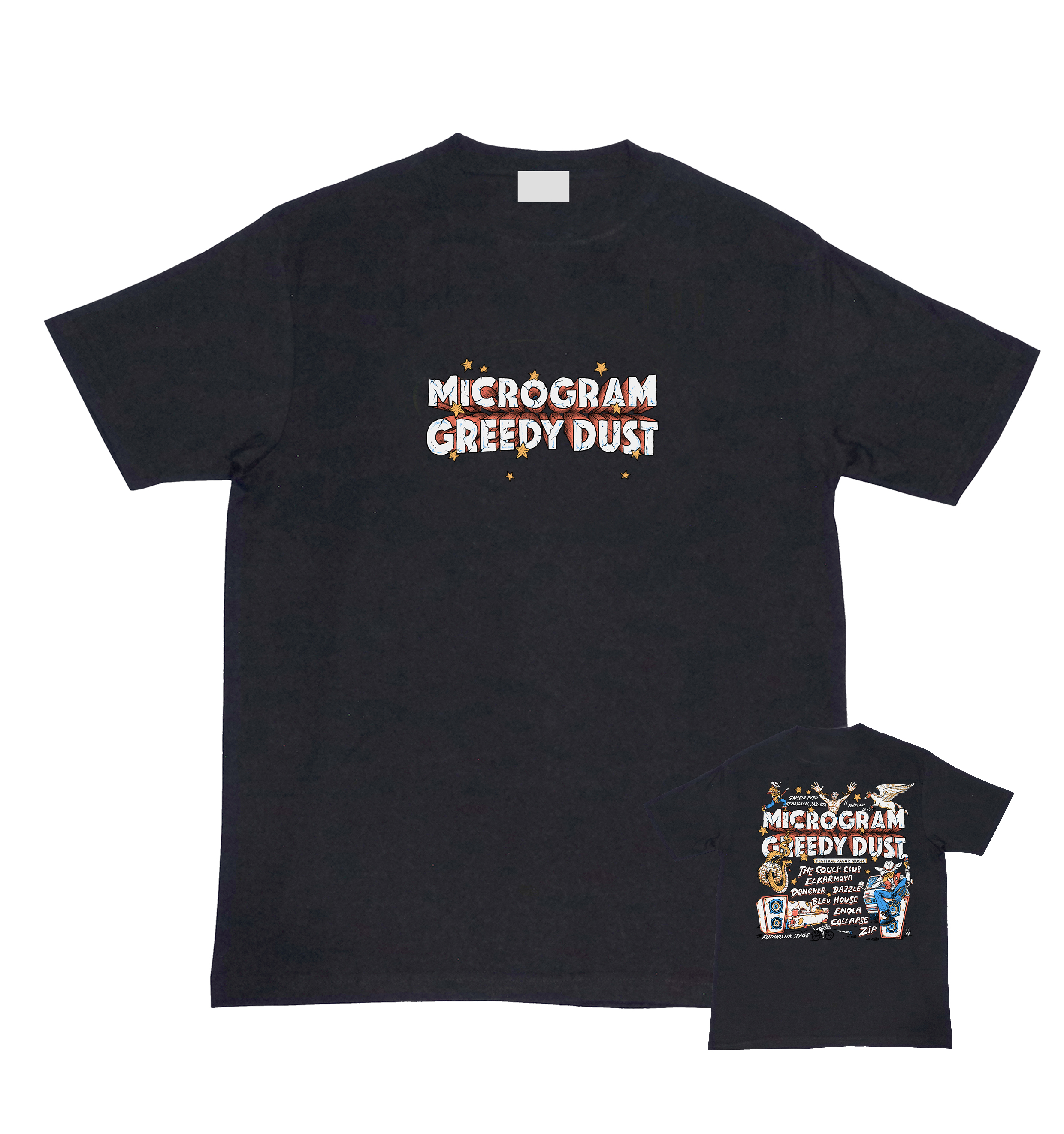Two forces from the local independent music scene, Microgram and Greedy Dust, joined forces to take over one of Pasar Musik’s stages at Gambir Expo, Kemayoran (10–12 February 2023). The collaboration featured acts from both camps—Microgram presented BLEU HOUSE, The Couch Club, Collapse, and Elkarmoya, while Greedy Dust brought Dongker, Dazzle, Enola, and ZIP. The two also launched Microdust, a limited mini merchandise collection of four exclusive designs available online and at the festival booth.
